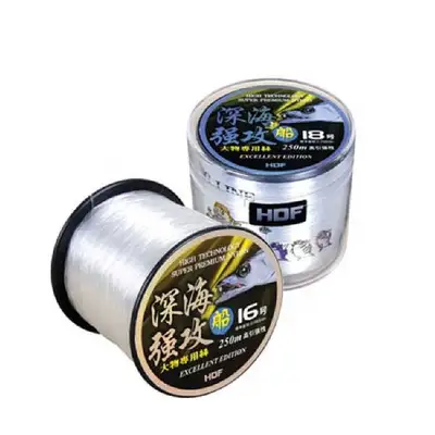 컬러 합사의 단점 극복, 갈치낚시 전용 투명색 원줄! 대형 갈치 등을 상대로 사용 가능한 고강도 완충, 고급 프리미엄 나일론 소재의 선상낚시 전용 투명색 원줄.