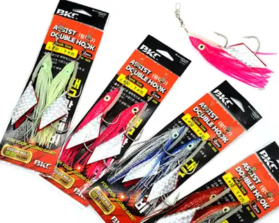 홀로그램어피 + 꼴뚜기 루어 조합. 2단 단차 더블 혹(hook)으로 강력한 혹킹력. 장축광 튜브 사용으로 줄꼬임 방지 효과. 밀걸림 발생시 채비터짐으로 메탈지그는 회수 가능한 채비.