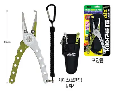 185mm 지깅 빅게임에서 큰 사이즈의 스플릿 링을 손쉽게 뒤넘기는 구조의 빅사이즈 플라이어. 루어스플릿-링 튜닝, PE 합사 컷팅(초경 텅스텐니퍼) 기능을 탑재한 다기능 멀티타입. 강한 비틀림을 극복할 수 있는 고강도 소재 경량 특제품. 구성품: 빅플라이어, 카라비너스프링줄, 케이스(보관집)