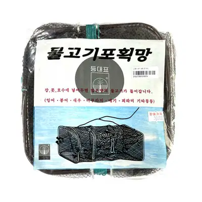 몸고기포획망. 임어·봉어·새우·마무리·배기·피라미기타동물 대응. 새우/물고기 포획망, 수납이 용이한 고리, 양면 포획 구멍, 지퍼 먹이망, 꺼내기 쉬운 지퍼 장착.