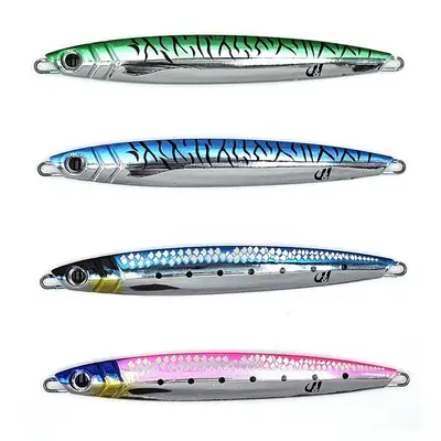 크롬 베이스 라이트지깅 메탈지그. 농어, 부시리, 방어, 삼치, 참치, 만새기 등 회유성 어종 전용 루어.