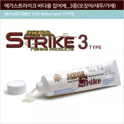 메가스트라이크는 바다용집어제와 배스집어제, 그리고 러지지그 및 스프트베이트로 유명한 회사입니다. 이번 소개하는 제품은 기존 배스용에 이어 오징어향, 새우향, 가재향의 3가지 바다용 집어제입니다. 스프레이식이나 아닌 튜브타입으로 손으로 베이트 표면에 발라주는 방식이라 오래가는 장점이 있습니다.