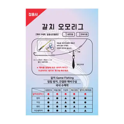 내만용 갈치 오모리그 바늘. 묶음바늘 5세트 구성. 장축광 튜브 사용.