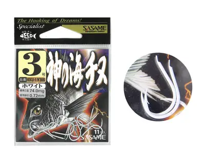 감성돔 바늘 3호. 화이트 컬러로 수중에서 바늘 반짝임을 최소화하여 입질 유도에 효과적.