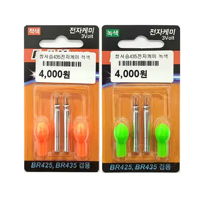 쌍사슴 전자케미 CR435는 일본 네코 전기와 기술 합작으로 생산된 제품으로 품질이 우수합니다. 3V 전압의 녹색 케미 라이트입니다.