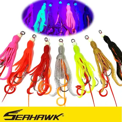 스커트 일체형 꼴뚜기 채비 대구 참돔 농어 UV 타이라바채비. 씨호크 타코라바 [훅 & 스커트 세트]. 초가성비의 고품질 타코웜 세트 "타코라바". 다양한 색상과 바늘까지 한세트로 편리한 구성. UV(케이무라), 야광 기능 등의 탑재로 대상어 유인력 극대화. 내부식성 1년 이상의 고급 바늘 사용. 대상어 후킹에 용이한 치누바늘 사용. 사용과 보관이 편리한 개별 비닐팩. 단순포장으로 원가절감 및 최저가 판매.
