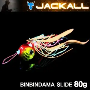 JACKALL FRESH WATER 빈빈다마 슬라이드로, 유동식 훅 구조와 슬라이드형 라인업(레드골드/에비오렌지 등)으로 구성된 민물용 하드베이트 제품군.