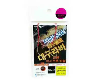 대구라바 전용 어시스트 바늘 피네스 버전이 새롭게 출시 되었습니다. 고수온기 대구 타이라바 시즌에 접어들면서 새벽널 피딩 타임을 제외하면 대구들의 입질이 짧아집니다. 마치 참돔의 예신처럼 대구들도 베이트를 물었다 벌었다 반복하다 본신이 이어지는 입질이 많아집니다. 이에 보통 많은 앵글러 분들이 사용하던 타코베이트나 불롭이 큰 루어들은 숫바이트가 많아지고, 큰 바늘의 셋팅은 대구들이 이물감을 느껴 이러한 상황이 일어납니다. 피딩 타임이 지난 상황에서 예민한 대구들에게 베이트의 불롭을 줄이고 일반 넥타이만 셋팅하는게 마렛수나 본신까지 이어지는데 훨씬 유리합니다. 심플한 컬리 조합이나 불롭감은 작지만 파동이 큰 타이 조합에 어울릴 수 있도록, 대구라바 전용 어시스트 바늘의 피네스 버전을 만들게 된 이유 입니다.