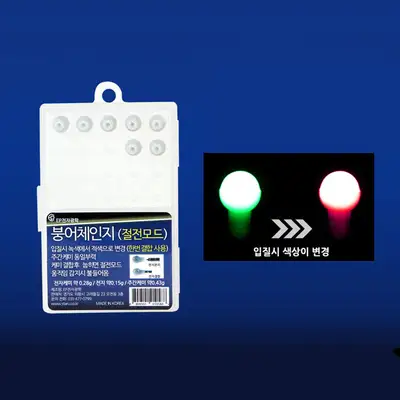 입질시 녹색에서 적색으로 변경. 절전모드 적용. 케미 결합 후 넓혀진 절전모드. 웅직임 감지시 불들어옴.