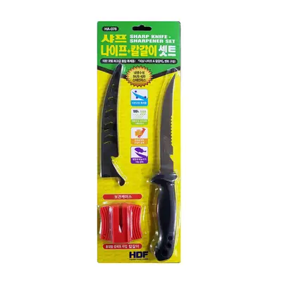 사프 나이프 + 칼갈이 셋트. 나이프와 칼갈이가 포함된 세트 제품.