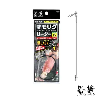 한치 오모리그 채비용 블랙 리더 싱글 채비. 블랙 혼테론 리더, 파워 오야코 스위벨, 트윈 록 스냅 포함. 1m 길이, 목줄 4호, 2개입.