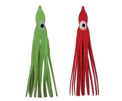 축광 헤드 + 스커트 + 꼴뚜기형상 조합형 루어. 갈치·호래기 루어낚시에 특효. 수중에서 발광하는 유인성 최강의 제품.