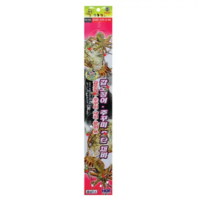 갑오징어 쭈꾸미 2단 채비. 2단 구조로 에기(2개)와 주꾸미바늘·주(1개)를 동시에 셋팅할 수 있는 제품입니다. 대상어종은 갑오징어, 주꾸미, 낙지, 문어 등 두족류입니다.