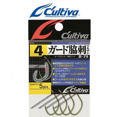 가드 장착 와키 전용 후크. 2개의 가드가 와이드레스 효과를 높이고, 와키 시 웜 스틱을 방지하는 카브 형태. 웜 절단 방지를 위한 라운드 링 사양. 절묘한 바늘 선단 각도가 밸런스를 향상.