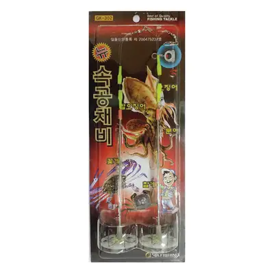 속공채비로 문어 낚시에 특화된 제품. 회전구슬 적용으로 줄 꼬임 방지, 핀도래 장착으로 채비 교체가 간편하며 케미고무 장착으로 케미라이트를 꽃아서 사용할 수 있습니다.