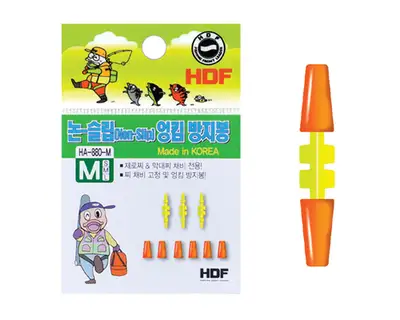 논슬립 엉킴방지봉. 구멍찌(제로찌) & 막대찌 낚시 시 사용하는 찌 채비 고정 및 엉킴 방지봉. 라인을 보호하고 미끌림을 최소화한 저마찰형 논-슬립 설계 구조. 고정 축의 라인 홈에 라인을 끼우고, 양쪽에 쿠션 고무를 끼워서 고정하는 타입.