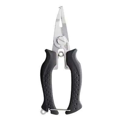 미니 링플라이어. #00~#3 링 오프너 및 라인 커터 기능. 나일론·후로로·PE 대응. 분할 링 오프너, 잡기 쉬운 손잡이 모양, 핸들 엔드 잠금, 엔드 로프 매는 벗줄 장착 구멍.