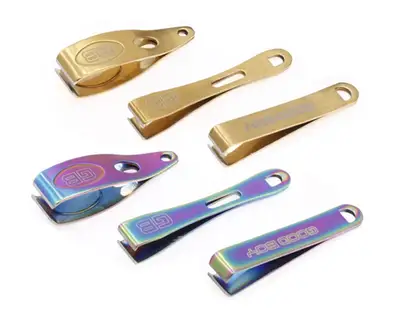 카멜레온 티탄 (TITAN) 컬러와 미려한 골드(Gold) 컬러의 낚시줄(Line) 전용 커터(Cutter).