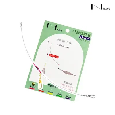 봉돌단차 5cm 간격의 에깅 채비. 가지줄 길이 조절이 용이하며 장력유지모듈로 확실한 고정이 가능합니다.