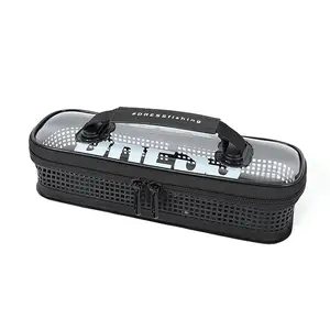 EVA 메쉬 소재의 태클 박스로 물세탁과 건조가 가능합니다. 바닥에도 물 빠짐 구멍이 뚫려 있습니다. 약 27cm까지의 메탈 지그, 빅베이트와 플러그가 들어갑니다. 루어, 소품, 미끼 등 낚시 도구뿐만 아니라 일상 소품 보관에도 유용한 아이템입니다. 투명한 뚜껑으로 내용을 확인이 용이합니다. DRESS 바칸 미니에 2개가 들어갈 수 있는 크기입니다.