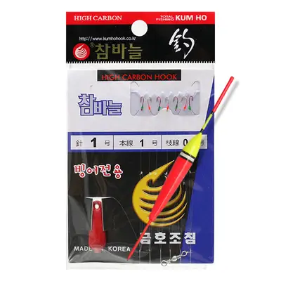 빙어바늘 7본 채비. 길이 1.2m. 금색, 적색의 총 7개의 극세 빙어바늘과 봉돌로 구성된 빙어채비.