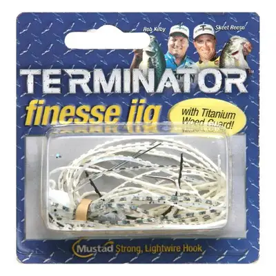 Like all Terminator products, our Finesse Jig is innovative and made of premium components. The new and innovative titanium weed guard is perfectly positioned to keep the jig as snagproof as possible. Terminator's commitment to detail led us to the perfect Mustad hook. Mustad's model #32729 is thin enough for fast penetration even when using light line, yet stout enough not to bend.