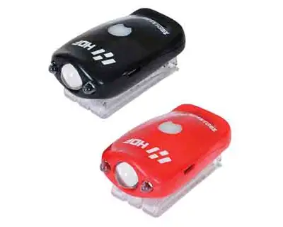 레드 색상. 메인 LED 210루멘, 보조 LED 40루멘. 5핀 충전기 연결구 및 상·하 각도 조절 가능. 탈부착 클립 포함.