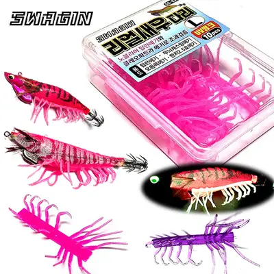 에기의 배에 리얼새우다리를 올려 장착 위치를 선정 후 순간 접착제로 접착하여 리얼한 새우의 형상을 연출합니다. S 사이즈는 소형 에기에 적합합니다.
