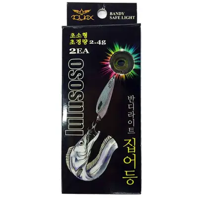 100% 완전 방수로 바다 심해 갈치낚시에 적합하게 개발된 제품입니다. 관통으로 구멍이 뚫려 있어 유통채비 및 빛에 민감하게 반응하는 대상어종(오징어 주꾸미 흐래기 문어 뿔락 열기)에 적합한 제품입니다. 무게는 2.4g으로 초소형입니다. 물속으로 들어갔을 때 끝으로 전류가 흘러 불빛이 들어오게 되는 원리로 물 밖으로 나오면 불빛이 꺼지게 됩니다. 녹색 파랑색 백색이 빠르게 순차적으로 바뀌면서 대상어를 유인하게 됩니다.