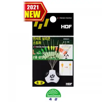 HA-358 인서트 실리콘 스토퍼. 2중 조립삽입형으로 강한 챔질 시에도 밀림현상을 극소화하며, 찢어지지 않는 고신축성 실리콘 소재와 상시 축광 적용으로 야간 위치식별이 용이한 찌 스토퍼.