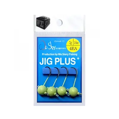 축광 지그플러스(JIG PLUS+). 원형타입이며 액션에 따라 슬로우 채비가 가능하고, 돌가루 원자재 기반 축광과 우레탄 코팅 방식으로 밝기와 지속시간을 높인 제품. 도래 장착으로 다양한 채비 연결이 가능하며 하이카본 스틸을 사용.