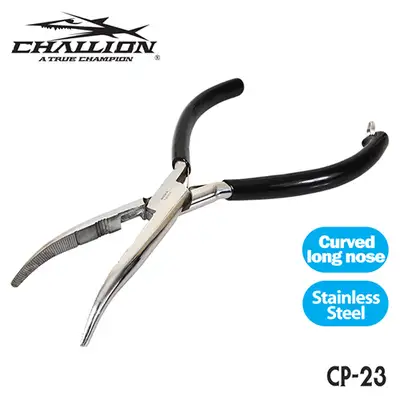 곡선형 스테인리스 스틸 롱 플라이어. 섬세한 작업과 뛰어난 그립감, 곡선형 톱날 구조의 완벽 실현. 첼리온 CP-23 롱 플라이어는 섬세한 채비 작업을 돕는 그립감을 높힌 핸들 디자인과 곡선형 톱날 구조로 신속한 채비교체가 가능하며, 대상어 깊숙히 박힌 바늘을 손쉽게 제거 가능합니다. 또한 내구성이 뛰어난 스테인리스 스틸로 본체를 제작 하였으며, 절삭력이 뛰어난 모노라인용 클리퍼가 탑재되어 있습니다.
