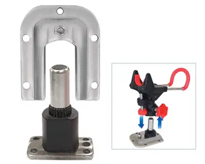 받침대를 견고히 지탱해주는 특수 브라켓. T자형 · U자형 특수 브라켓으로 클러 · 선상 받침대 (HT-1216)와 결합하여 견고하게 사용가능. 접지 면적이 더 넓고, 고정부위도 5곳으로 더욱 안정적인 고정, 사용이 편리한 제품.