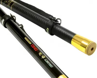초경량 최우선 추구로 발군의 조작성을 실현한 GMS 천명 LIMITED 뜰채. 750채 모델로 7.5m 길이에 121cm 접은 길이, 7마디 구조, 652g 무게.