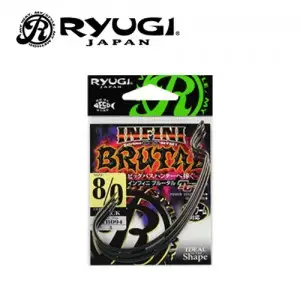 RYUGI 최대 클래스 빅 배스용 훅 INFINI BRUTAL. 와이드 밴드 갭 오프셋 훅 인피니를 기반으로 개발되었으며, 긴 웜에 맞춰 갭 폭과 포인트 밸런스를 재조정한 몬스터 훅입니다. 축 직경을 굵게 하여 강도를 확보하면서도 날카로운 관통력을 유지했으며, 자중이 있는 웜이 밀리지 않도록 크랭크 부분을 강화했습니다.