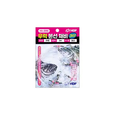 경심 24호 길이 2m 수량 3本入 우럭 본선 채비 3단 제품입니다. 채비 꼬임방지용 3단 본선 채비로 우럭 외 다양한 어종의 낚시에 적용 가능합니다. 날개 포장으로 이루어져서 신속한 채비 교환이 가능하며, 맨도래를 적용하여 지선을 편리하게 연결할 수 있습니다.