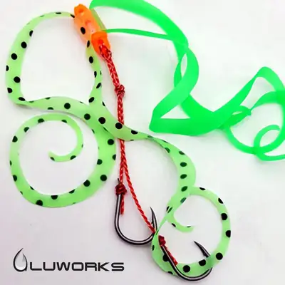 화려한 12컬러로 조과율 상승 원하는 대상어종에게 어필하는 프리미엄 훅 셋트. 쿠루쿠루는 빙글빙글 돌아간다는 말로 폴링시에 스커트가 몰의 저항을 받아 빙글빙글 도는 듯한 움직임을 내도록 디자인 했습니다. SS사이즈 1팩으로 구성된 혼합형 훅셋트로 가장 일반적인 상황에 사용가능한 표준 세팅입니다.