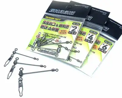 오모리그 & 바치콘 편대 스위벨. 선상 한치낚시, 아징낚시에 최적화된 편대 스위벨로 줄꼬임 최소화와 고인장 강도를 제공합니다.