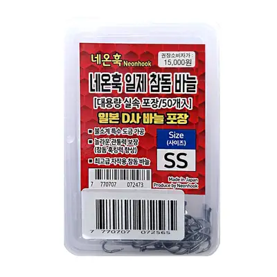 일본 D사 바늘을 대용량으로 실속 포장한 참돔 타이라바용 바늘. 불소계 특수 도금가공처리로 훅킹력 향상과 관통력을 강조한 Made in Japan 제품.