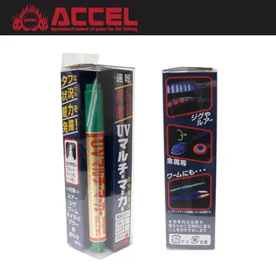 루어, 메탈지그, 웜, 바늘, 금속 등 다양한 소재에 도색할 수 있는 자외선 발광 마커입니다. 자외선 발광력으로 어려운 상황에서도 위력을 발휘하며, 특히 갈치 낚시나 집어용 웜 등에 사용 시 압도적인 조과를 나타냅니다. 펜 타입이 플랫 타입으로 되어 있어 도색이 간편합니다.