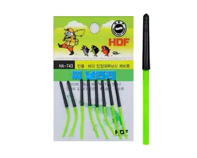 민물·바다 민장대빠낚시 채비용 찌 날라리. 견고성 우수한 PC소재로 제작된 기본형 찌 날라리. 민물과 바다 민장대 찌의 자락(自作) 채비 보수에 사용. 구성품으로 합사실(25mm)과 찌꽂이(20mm)가 포함됨.
