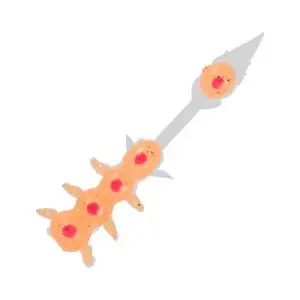 구슬 모양의 몸통이 네 개 연속으로 이어져 있으며,
