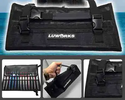 롤형태로 롱지그를 안전하게 보관하는 지그룹백입니다. 부직포 투명커버, 48cm 높이로 롱지그도 커버 가능한 12개의 슬롯으로 지킹낚시에 큰 도움이 됩니다.