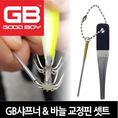 샤프너 + 바늘교정핀 결합 특제품. 두족류 낚시 전용 제품. 부식에 강한 스테인리스 소재 사용.