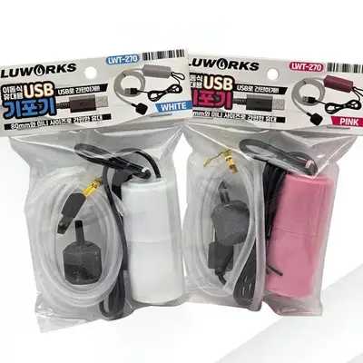 80mm의 미니 사이즈로 간편한 휴대가 가능한 USB 기포기. 91g의 초경량 무게로 보조배터리, 휴대폰 충전기, 차량 시거잭 등 모든 USB 타입 기기와 호환. 에어스톤과 에어호스 3가지 구성품으로 심플하고 간편한 사용이 가능.