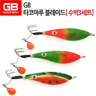 수박 3종 세트. 강렬한 색감의 수박 배색으로 문어를 유혹하는 강력한 어필력과 문어전용홀의 문어말층 에기.
