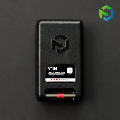 V104전용 충전기, 자체 보호회로 탑재, 삼성 SDI 정품 셀 사용, LED 게이지, 생활방수, 전면투명 보호가방 제공, 2년 무상 AS