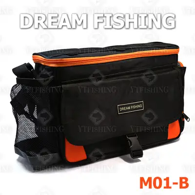 루어가방 M01-B / Dream Fishing. 사이즈: 약 38×13×24(cm). 내부에 태클박스 2개 수납 가능. 물통 수납 가능. 사이드 포켓 수납 공간 있음.
