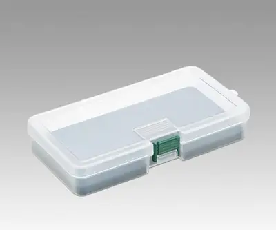 낚시 미끼와 소품을 정리하기 위한 수납 케이스. 내부에 슬릿 형태의 홈이 있어 미끼를 안정적으로 보관할 수 있습니다. 외부 크기는 179mm x 89mm x 29mm이며, 내부 슬릿 깊이는 19mm입니다.