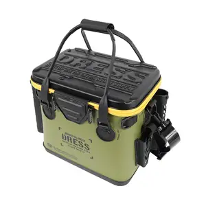 DRESS 로고가 새겨진 하드 타입의 상부 뚜껑. 뚜껑 뒷면에는 웜이나 소품 수납에 편리한 메쉬 포켓 부착. 안쪽에 스토퍼 코드가 있어 너무 많이 열리지 않고 수납물을 넣고 뺄 때 편리. 오리지널 디자인의 로드 홀더 4개, 플라이어 홀더 장착. 본체는 2mm 두께의 EVA 원단으로 내구성이 뛰어나며, 낚시 후 통째로 씻을 수 있음. TPU 소재로 냄새, 얼룩, 스크래치에 강하고 내마모성이 뛰어나며, 어깨에 부담을 덜어주는 어깨 패드 부착. D링을 2곳에 배치. 태클박스 멀티 S사이즈 4개 수납 가능, 멀티 W사이즈 2개 수납 가능. 용량: 17L / 무게: 1.4kg. 재질: EVA(2mm) / 뚜껑 PP / 숄더 벨트 TPU.